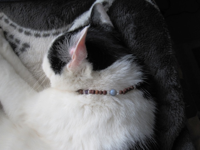 我が家の猫にパワーストーンで首輪を作ってみました。