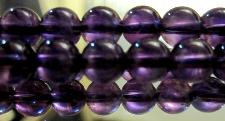 今回使った石の種類は、天眼石(白黒の瑪瑙)と、水晶8mmと水晶128面カットのボタン、そして、アメジストの6mmです。